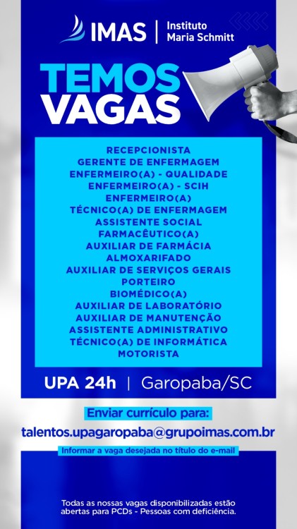 IMAS Assume a gestão da UPA 24Hs em Garopaba, e oferece vagas em vários setores